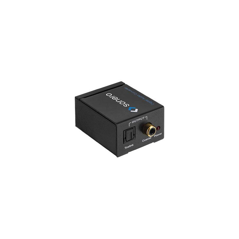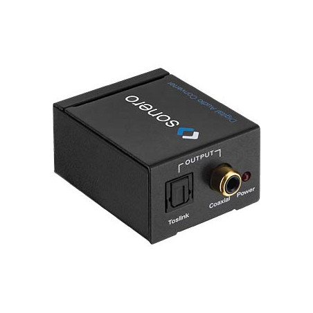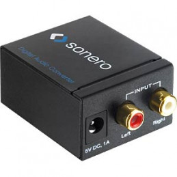Wandlung eines analogen Stereo Signals am L/R Cinch in ein digitales S/PDIF Audiosignal via koaxialem und optischem Ausgang.