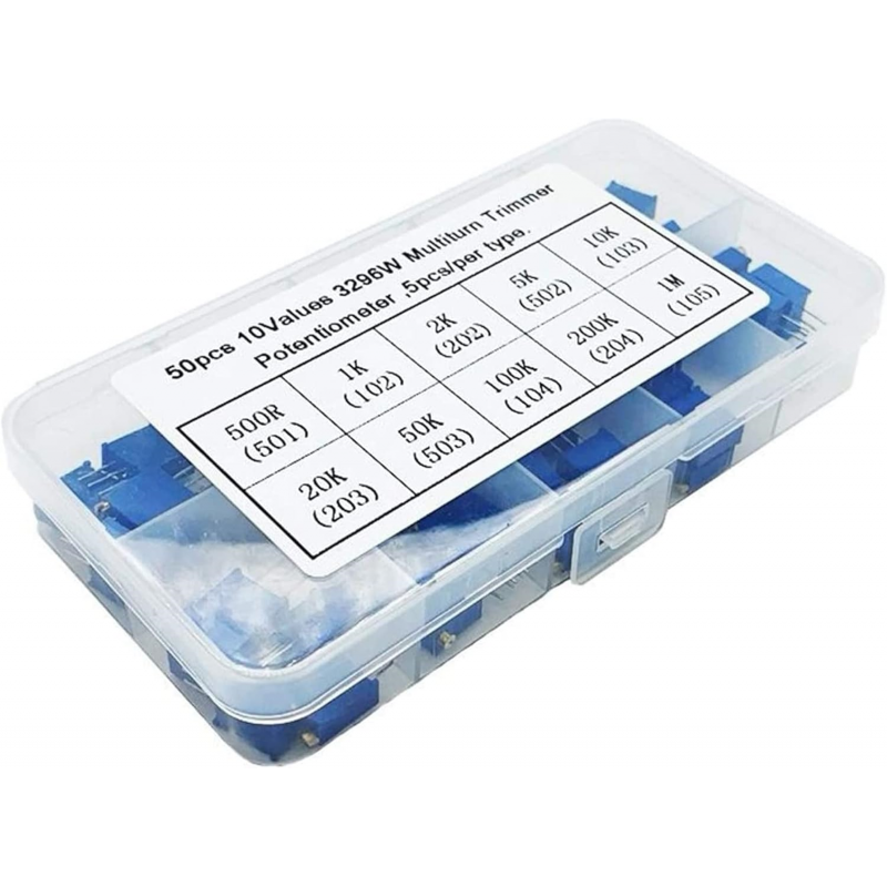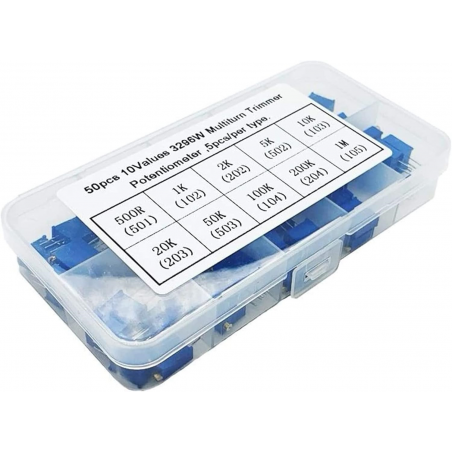 10Werte je 5 Stück 500R,1K,2K,5K,10K,20K,50K,100K,200K,1M stehend oben einstellbar