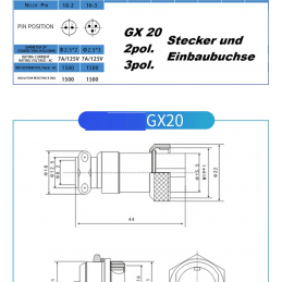 GX20-Steckverbinder Stecker (Männlein) und Buchse(Weiblein) 3 pol. als Set