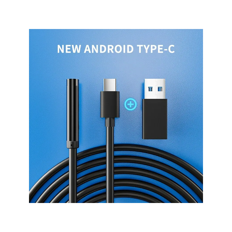 Kamera Wasserdicht 2m flexibles mini USB Endoskop Inspektionskamera mit 6 Weiß LEDs 1/9 CMOS 7mm Objektiv mit USB C Anschluss inkl. Adapter