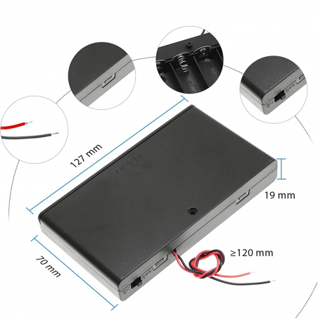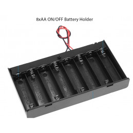 Batteriehalter passend für Zellen der Bauform: 8x Mignon AA Abmessungen: 12,6x7,1x2cm Anschluss: mit Anschlusskabel Bauform geschlossenes Gehäuse mit AN/AUS Schalter