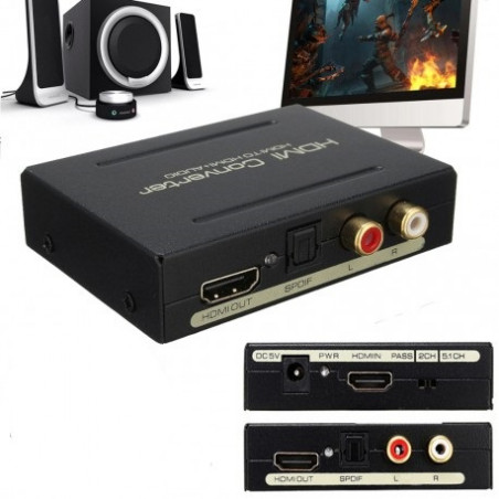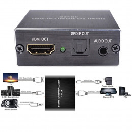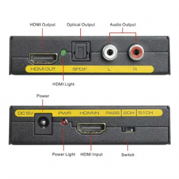 • 2-Kanal-Modus: 2-Kanal-Digital-PCM-Stereo-Audiosignal vom HDMI-Eingang extrahieren. Ausgang Stereo-Audio hdmi/spdif el/r