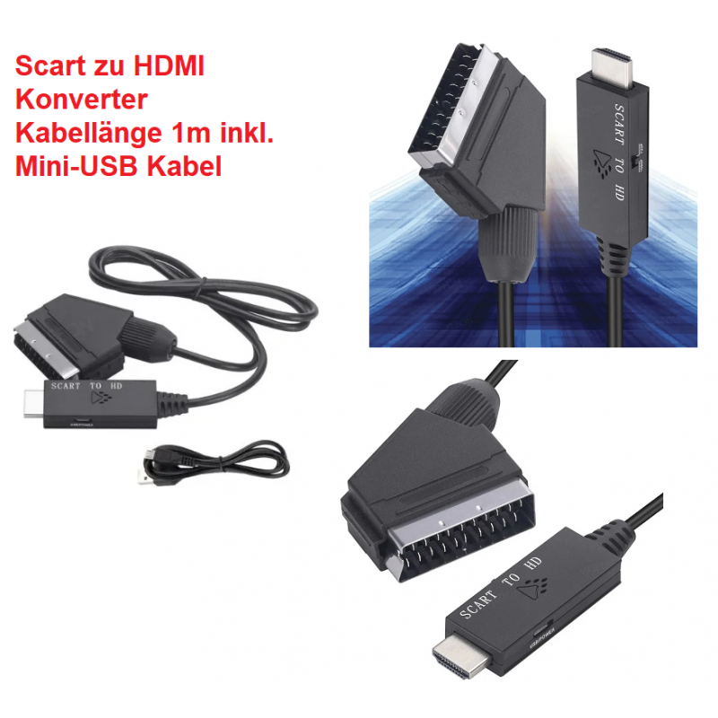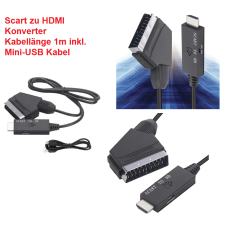 Scart zu HDMI Konverter mit 1m Kabel Eingang: Scart Ausgang: HDMI inkl. mini USB-Kabel zu Stromversorgung