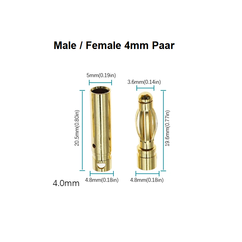 1 Buchse 1 Stecker 4,0mm Goldkontakte PAAR