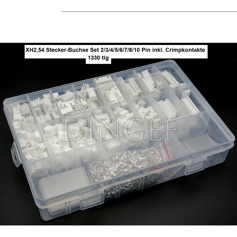JST-Stecker-Kit XH2,54mm 2-10 pol. Gehäuse und Printbuchsen inkl. Crimpkontakte 1330-tlg