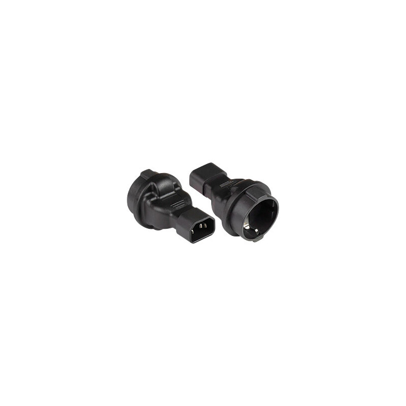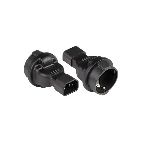 Beachten Sie, dass ein C14-zu-Schuko-Adapter oder -Kabel nicht über eine VDE-Zertifizierung verfügt und somit gegen die Sicherheitsnormen und Richtlinien der VDE verstößt. Sollten Sie trotzdem einen solchen Adapter oder ein solches Kabel nutzen, stellen Sie sicher, dass die angeschlossenen Geräte höchstens 10 A verbrauchen.