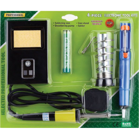 Das ZD-303 ist ein umfangreiches Lötkolben-Set, das eine tolle Auswahl an beliebten Zhongdi-Produkten für Anfänger enthält. Es enthält den ZD-30B 30W Lötkolben, die ZD-194 Entlötpumpe, 10g bleifreien Lötdraht und den ZD-10 Lötkolbenständer mit einem Schwamm.