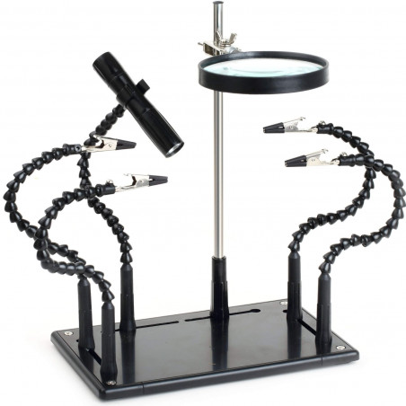 Die ZD-11P-1 helfende Hand mit Platinenhalter wurde speziell entwickelt, um Ihnen bei anspruchsvollen Aufgaben in Ihrer Werkstatt zur Seite zu stehen. Mit vier verstellbaren, drehbaren Schwanenhalsarmen und den zugehörigen Krokodilklemmen bietet dieses Werkzeug eine außerordentliche Flexibilität und Stabilität. Sie können die Position dieser flexiblen Arme ganz nach Bedarf anpassen, um selbst bei komplizierten Projekten präzise zu arbeiten.