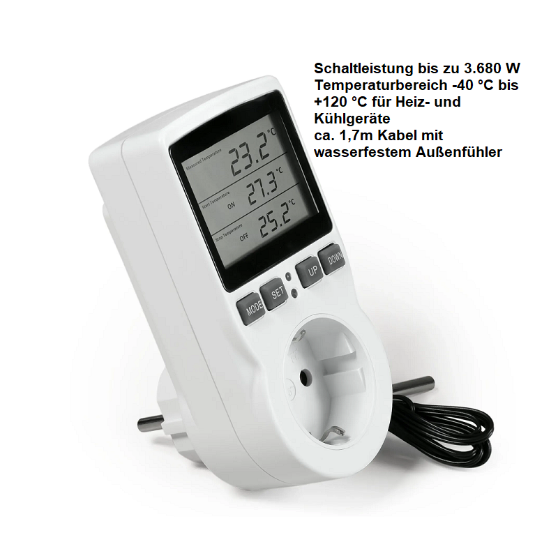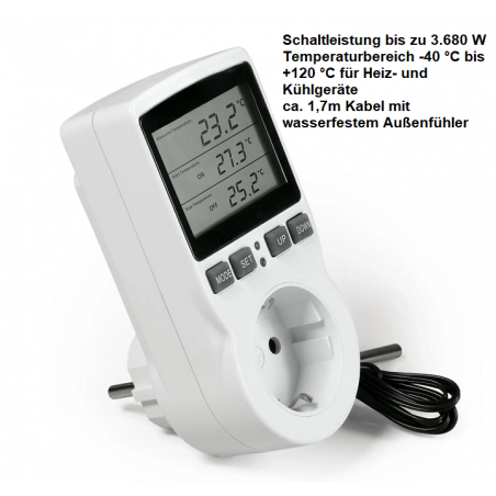 Digitales Steckdosen-Thermostat -40-120°C , + ca. 1,7m Kabel mit wasserfestem Außenfühler