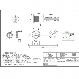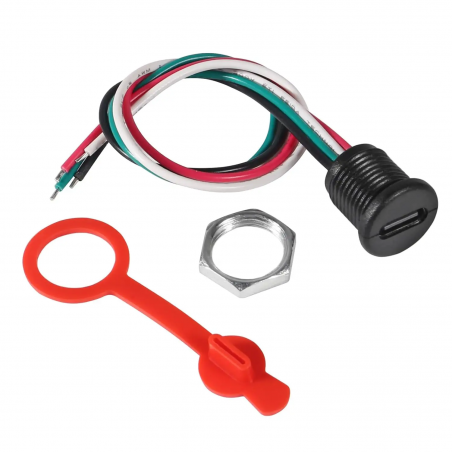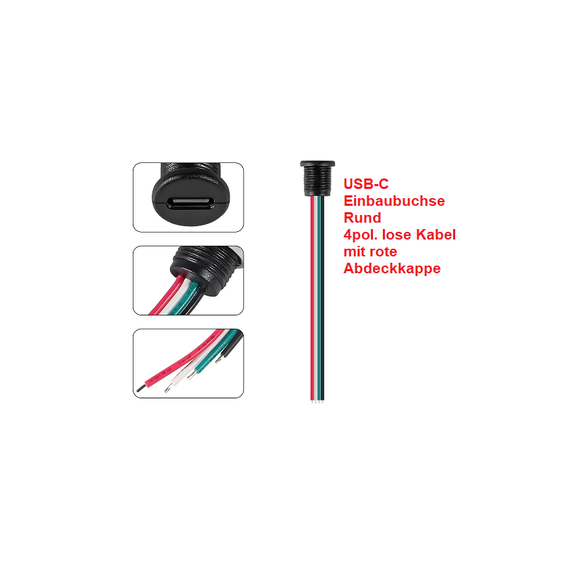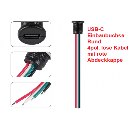 USB-C Einbaubuchse Typ-C 4pol. 150mm lose Kabelenden "Wasserdicht" M11 , rote Abdeckkappe